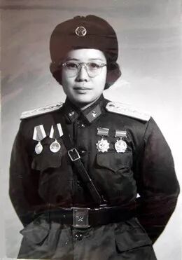 女尉官冬服。这位女大尉佩戴的勋章、奖章,是参加过抗日战争和解放战争的老战士