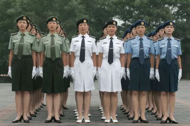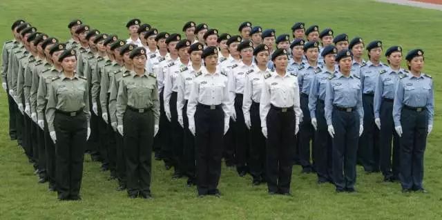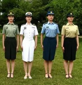颜色:女军官夏常服,陆军棕绿色,海军上白下藏青色,空军上棕绿下藏青色。女士兵夏常服:陆军草绿色,海军上漂白下藏蓝色,空军上草绿下藏蓝色。女将校官冬常服,陆、空军与本军种军官夏常服颜色相同,海军藏青色;女尉官、士官、士兵冬常服,陆军草绿色,海军藏蓝色,空军上草绿下藏蓝色。