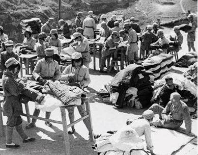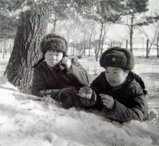 穿棉衣的志愿军女文工团员在坑道中慰问战士