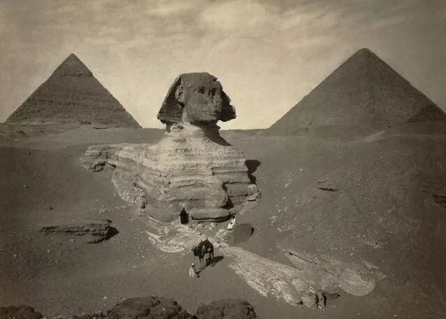 ▼ 吉萨大狮身人面像部分出土(19世纪60年代)
