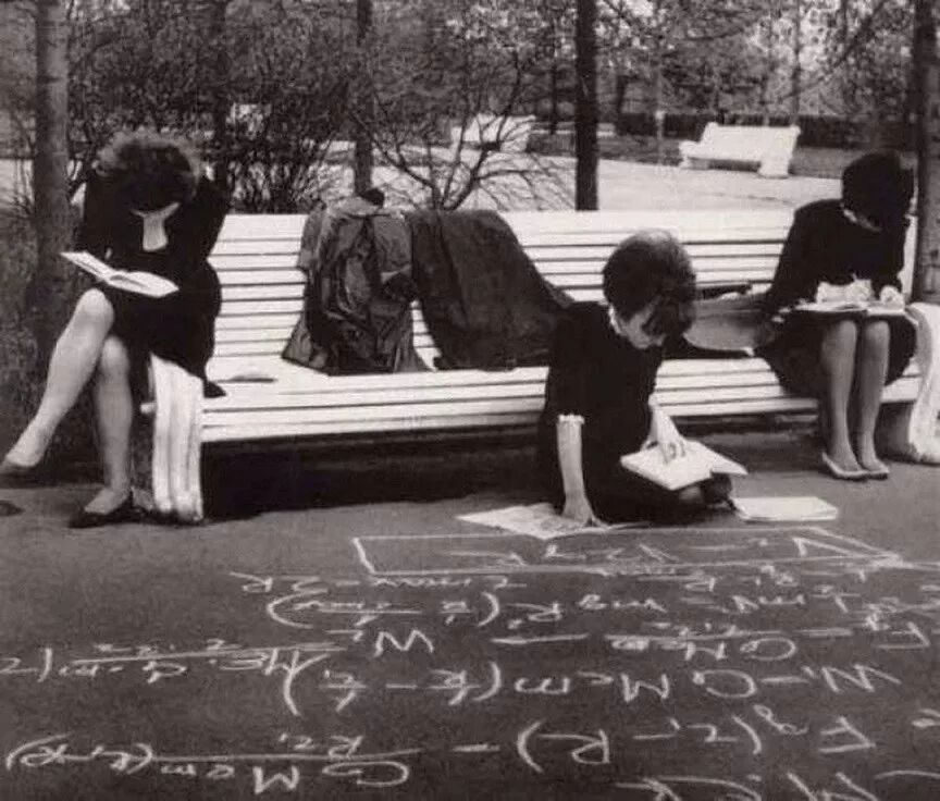 ▼ 20世纪60年代后期,在公园学习的前苏联女大学生