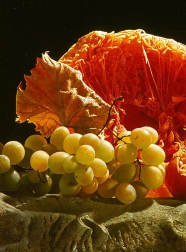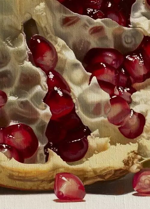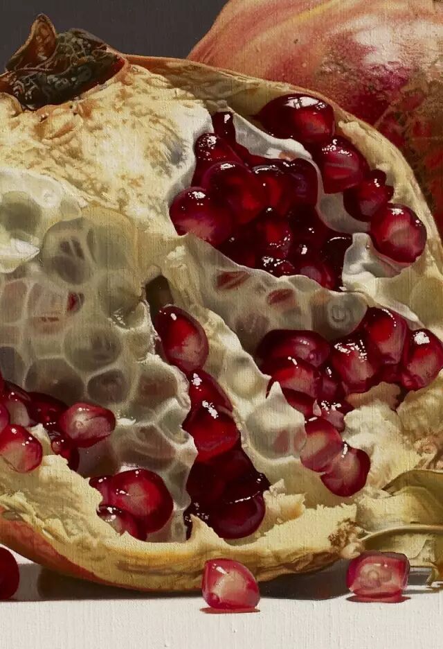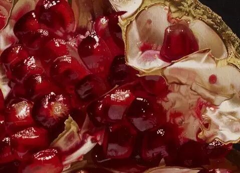 石榴在他的笔下,不管是光线还是色彩处理都是那么的漂亮,令人垂涎三尺!