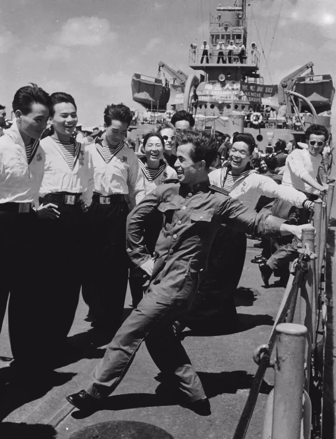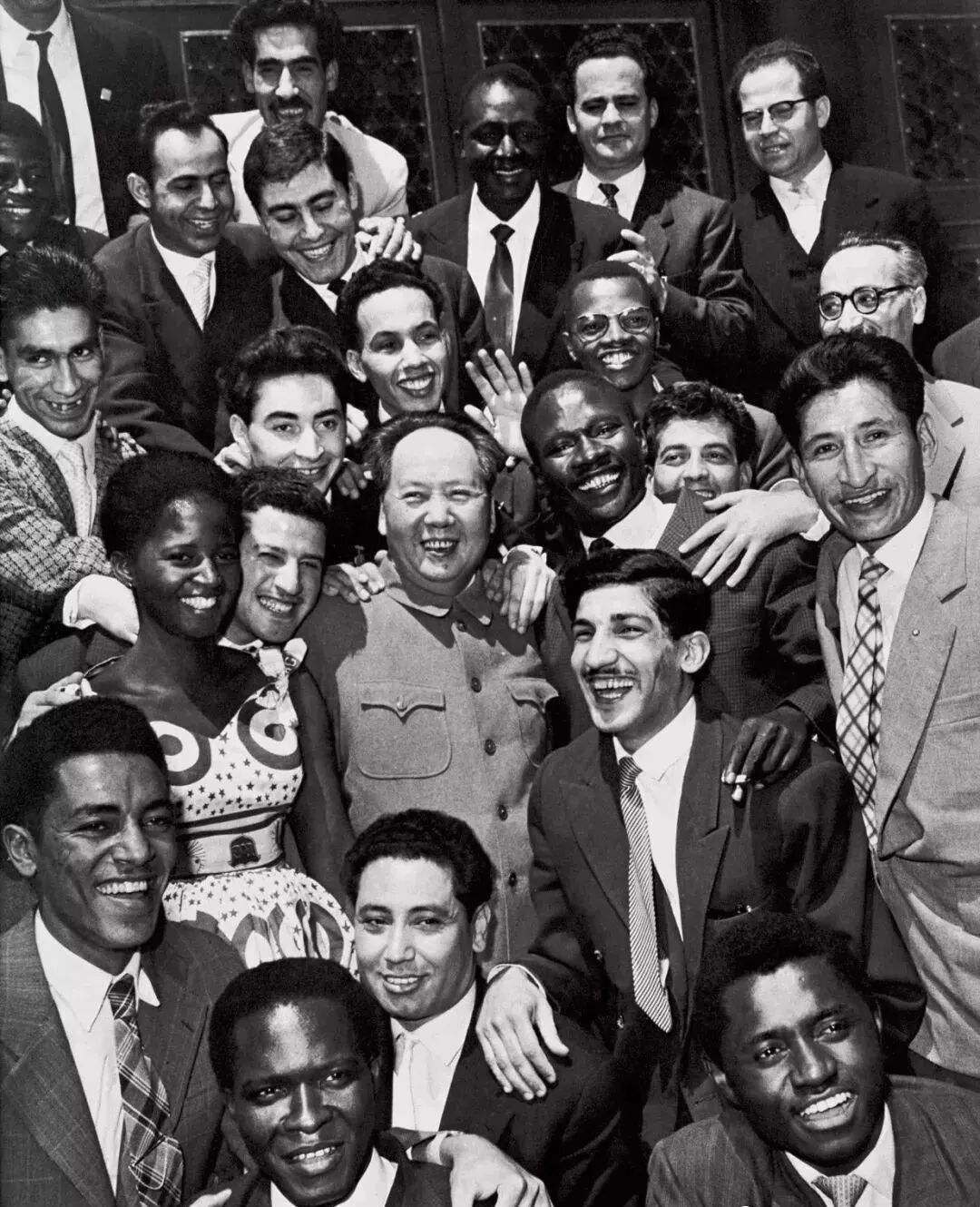 1959年,毛主席与亚非拉青年在一起。侯波/摄。