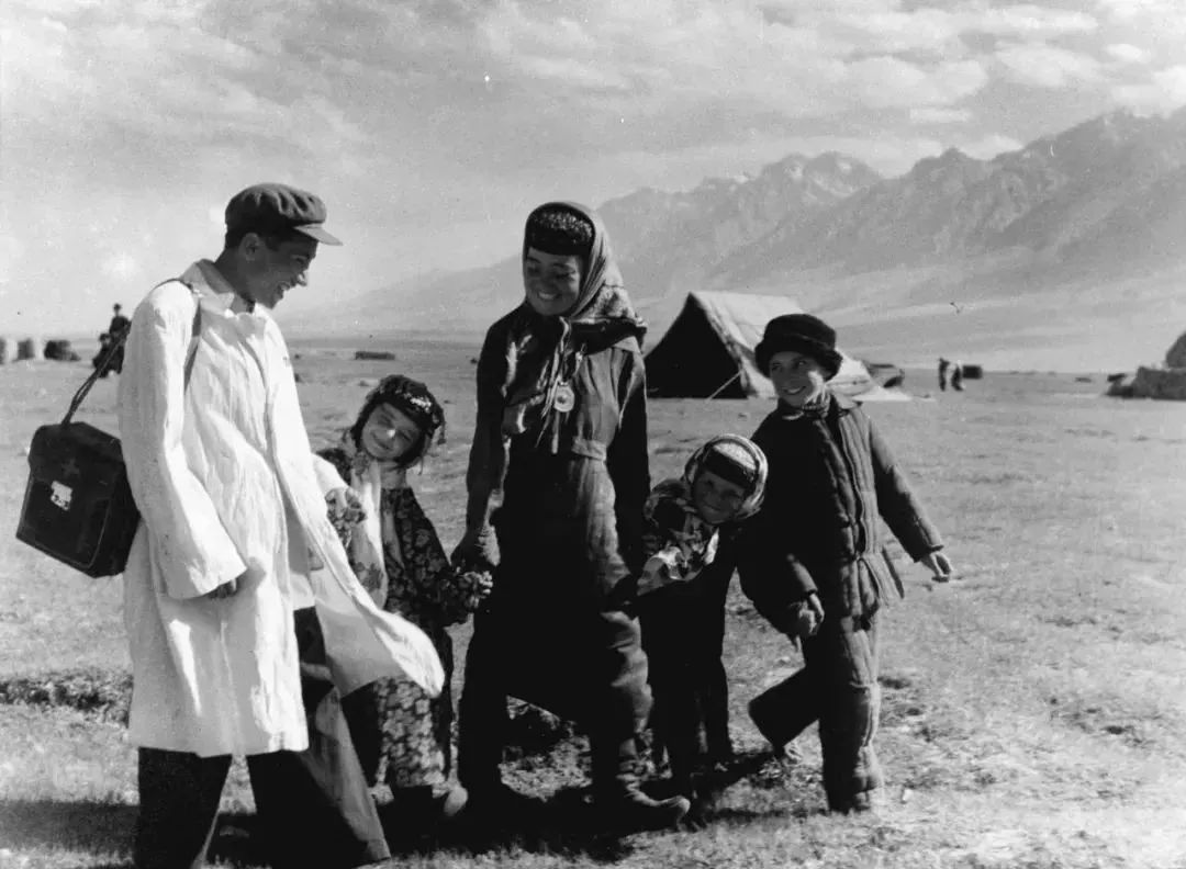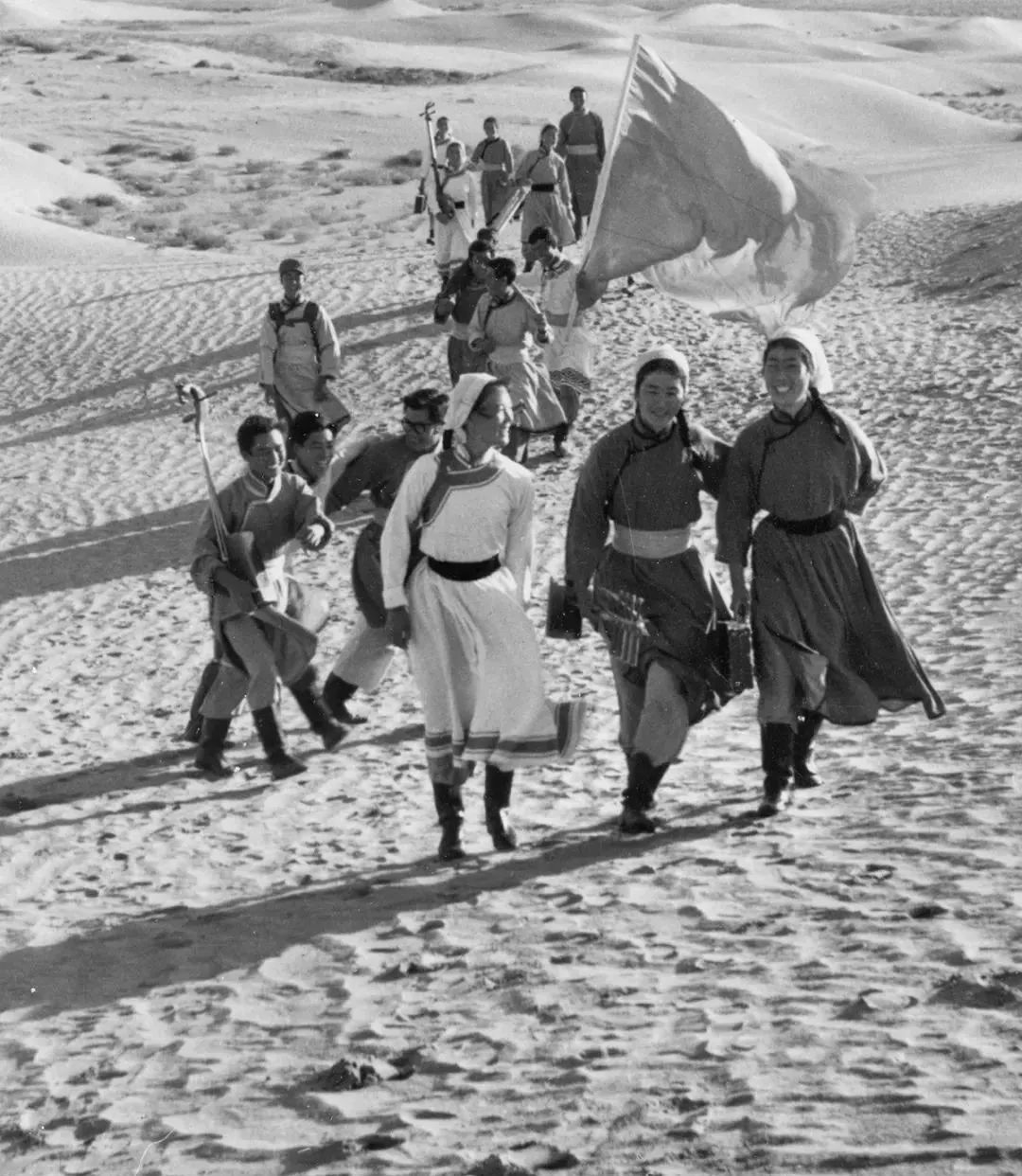 1961年,向阿尔巴尼亚战友学习。杨比沪/摄。