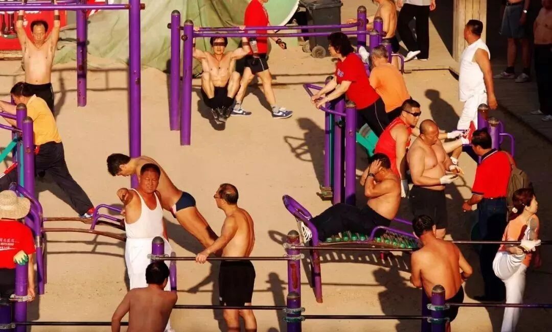 2010年,青岛市第一海水浴场,每天早晨,市民在此健身锻炼。杨健/摄。