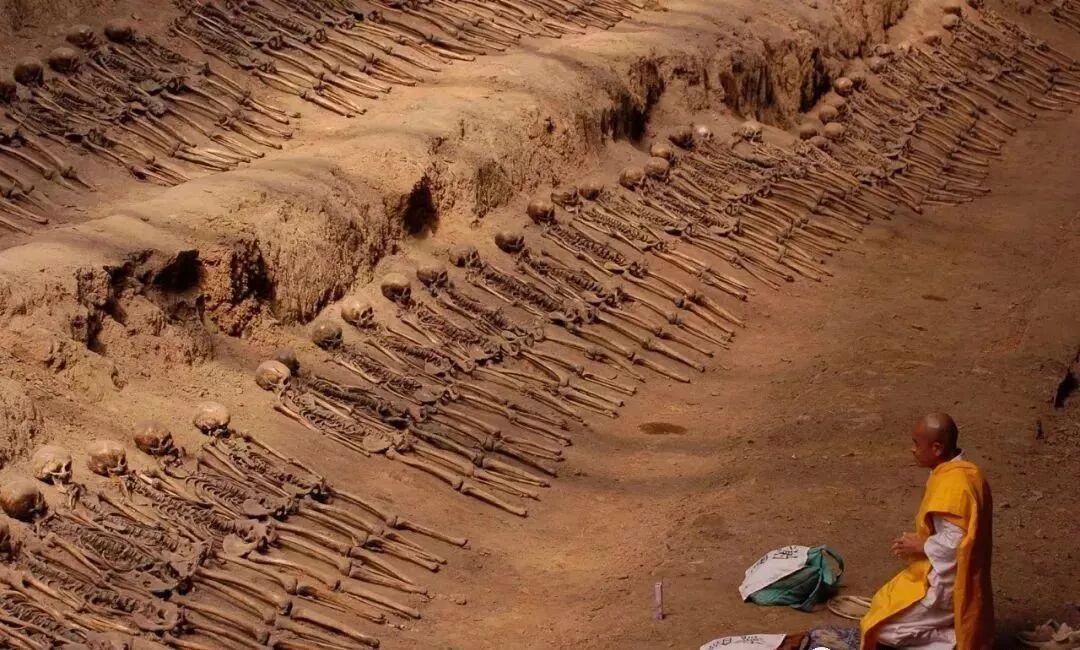 他在累累白骨前跪拜诵经,为亡灵祈祷忏悔。这里埋葬着数千具中国劳工的尸骨,见证着日本帝国主义侵略中国的罪证。