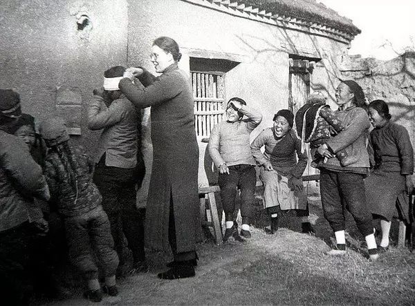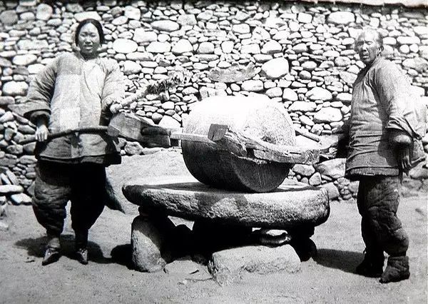 两个小脚女人在拉磨