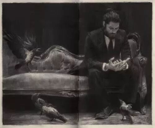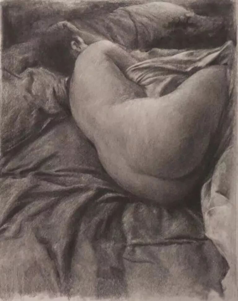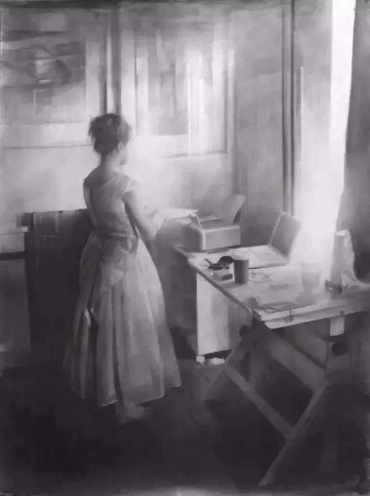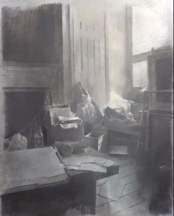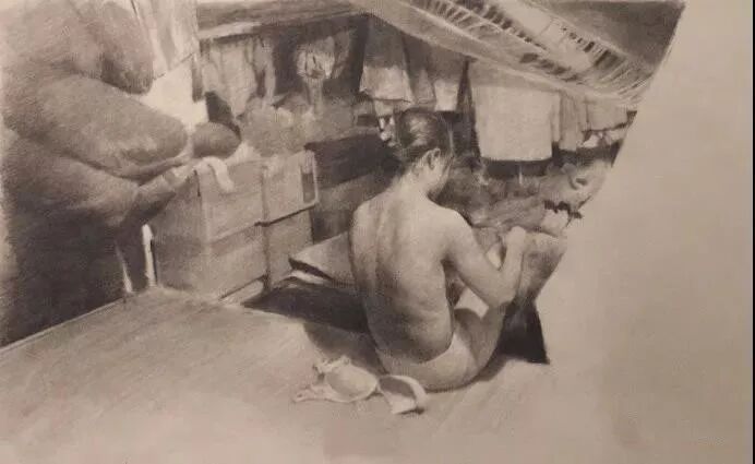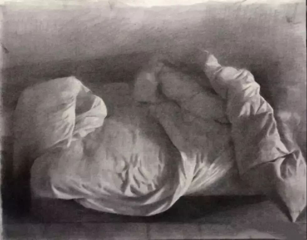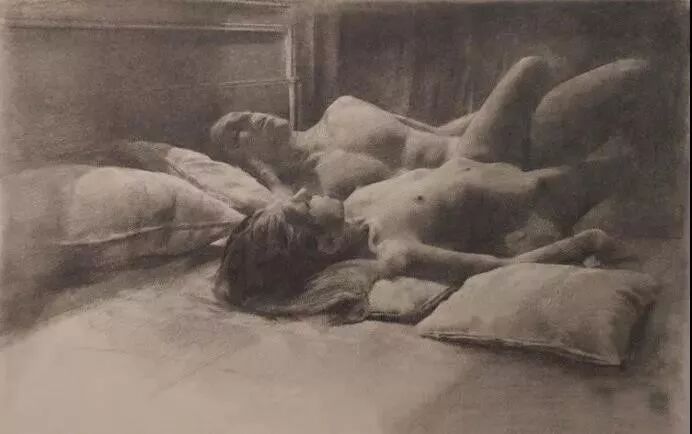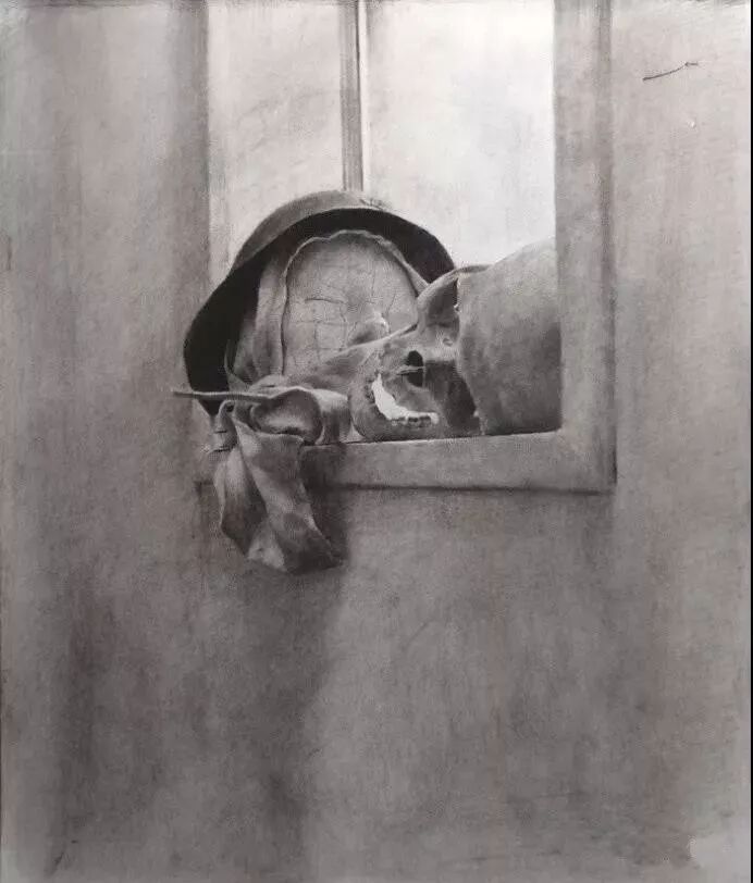 卡拉的素描作品有一种独特的魔幻感。她用朦胧的笔触,以及具有宗教色彩的物体来渲染画作的意境。