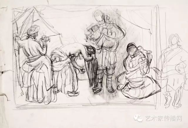 兰新铁路工地 1954 29.5×39.7 cm 速写 中国美术馆藏