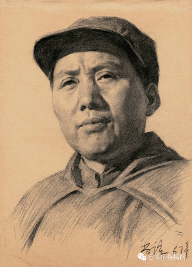 延安早期毛主席素描像 1964 39.5×27 cm 素描