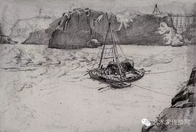 三门峡鬼门 1956 25.5×35 cm 速写 中国美术馆藏
