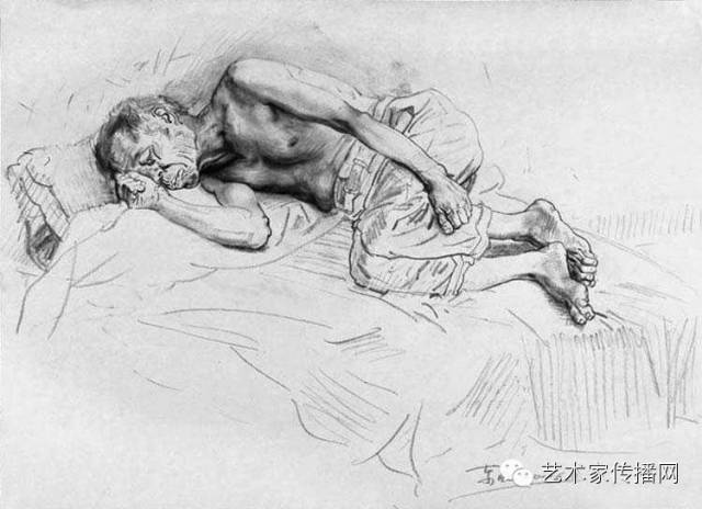 三门峡船工 1956 34.4×25.5 cm 素描 中国美术馆藏
