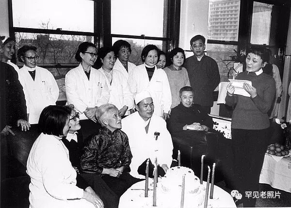 1980年,北京协和医院为80高龄的妇产科专家林巧稚(左三)祝寿。顾德华/摄。