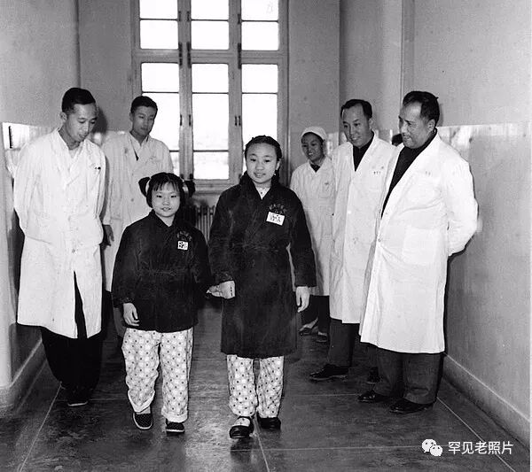 1965年, 因抢救公社羊群而冻伤的内蒙古草原小英雄龙梅(右)、玉龙在北京积水潭医院治疗冻伤,并装上了假肢。顾德华/摄。