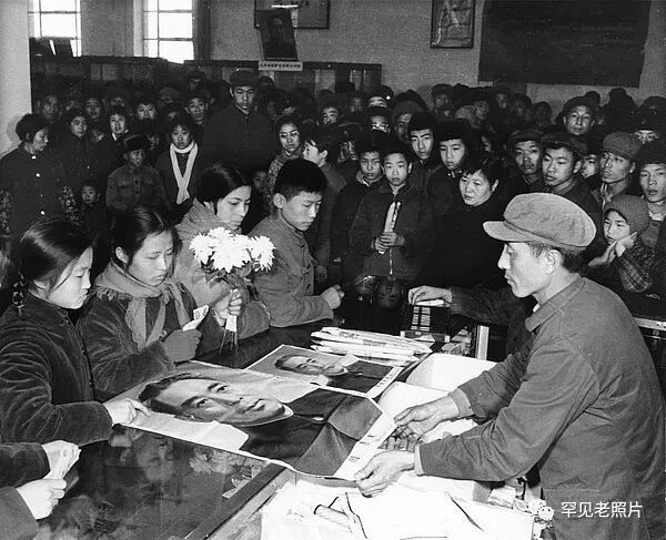 1976年,周恩来总理逝世第二天,在新华书店购买周恩来遗像的群众。顾德华/摄。