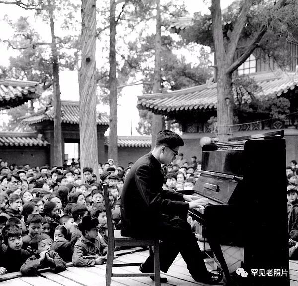 1964年,青年钢琴家刘诗昆在北京公园为游园的群众演奏。顾德华/摄。
