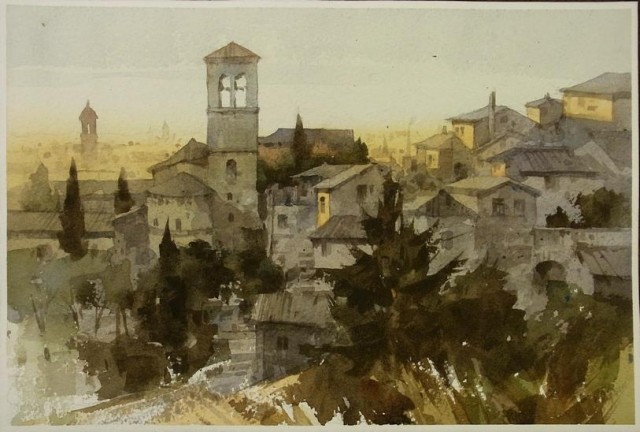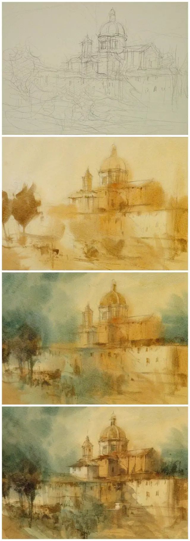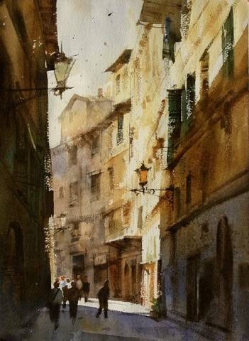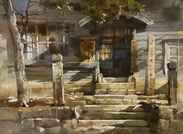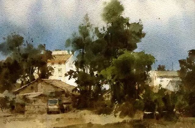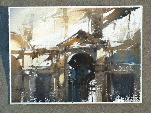 事实上,我的水彩画是在我的教学活动中练习作,而真正突飞猛进是在这三、五年的时间。并非我开始写生,而是我从2010年开始,不再为学生重复示范同样的教材。每一张新素材照片与企图变换表现方向的刺激,提供了各种新问题。我挑战并解决问题,所以我得到锻鍊,最终得以解脱照片的桎梏而重获自由。我要强调的是,重点不在"写生"的表面形式,而在"习作"的实质意义。只要持续做"习作",从习作来锻鍊观察力、理解力和创造力,这样无论是从写生、照片,甚至是大师的画作里,都会得到有效的启发与锻鍊。