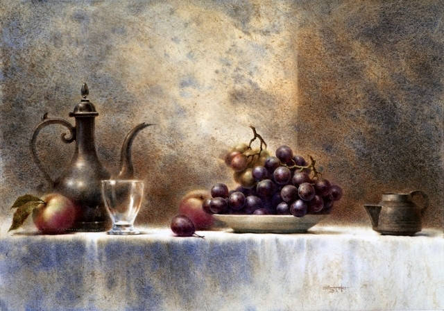 回首我的水彩艺术探索之路,除了高三时,为了术科考试画了一年多的静物水彩写生习作以外,进了大学之后,就再也没有写生的习惯。"写实画"对我来说,就是拍到一张构图还不错的照片,稍微调整一下主次强弱松紧,然后就可以完成一幅写实作品。