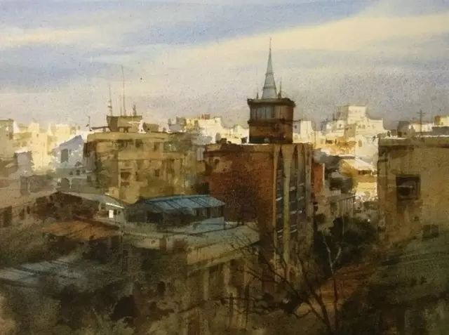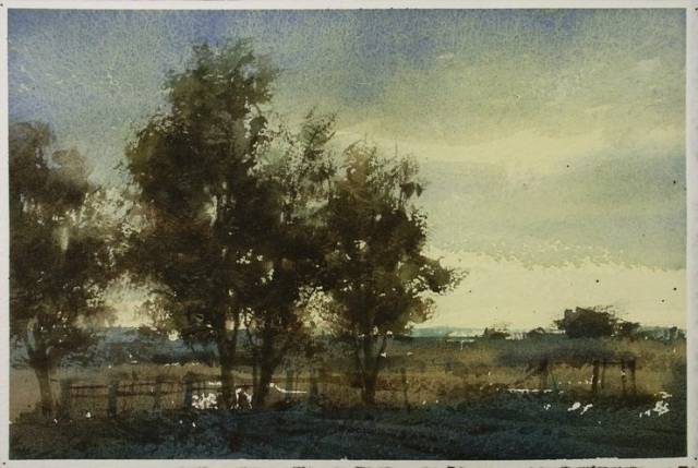 我常跟学生说:“不知道要画什麼题材时,就画逆光、斜阳与夜景吧!”,因为这种“珍珠光”题材不难画(搭配使用留白胶的话....),又容易吸引众人目光。在绘画媒介中,对於技巧最刁钻困难的水彩画来说,其资报酬率可说是很高、很高的啊~