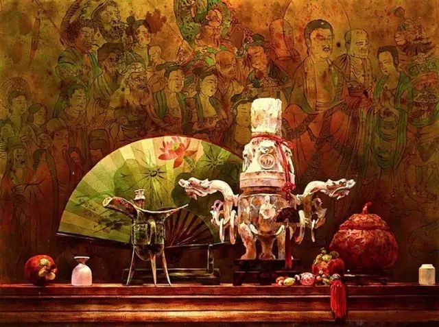 5.将剩下的大暗区填上去。我喜欢在快要乾之前,用小尼龙笔,霑很浓的颜料来乾刷,模拟油画的笔触。同时,也在这时候,用刮刀刮出亮线、小亮块。OK!目前为止,我们已经完成了『大明暗区块』的底层基础,可以开始『装饰细节』啦!