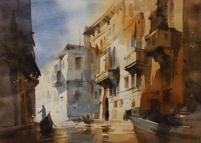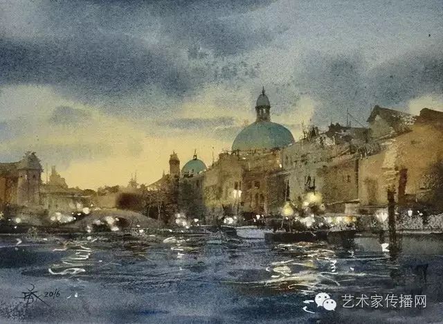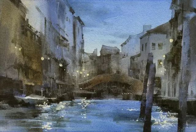 2014画作《威尼斯之夜》入选全美水彩画会NWS第94届国际年展并荣获署名会员资格。