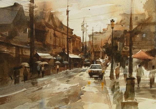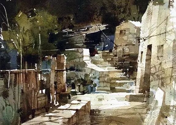 常有些学生拿他自己的作品请我点评,我第一个意见总是:我很好奇,这个景到底有什麽动力让你想画它? 很多人都误以为,简忠威最擅长化腐朽为神奇,一些不起眼的景物,他就是有办法让它变成一幅幅的水彩佳作。嗯...,其实并不然,那应该都是出于你们美丽的误解。
