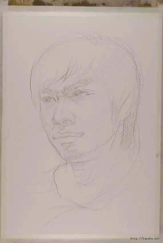 1.先用4B轻轻规划画面比例,再用2B从焦点开始勾勒。先勾勒重点,其他不重要的位置。
