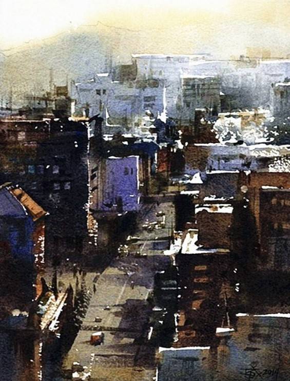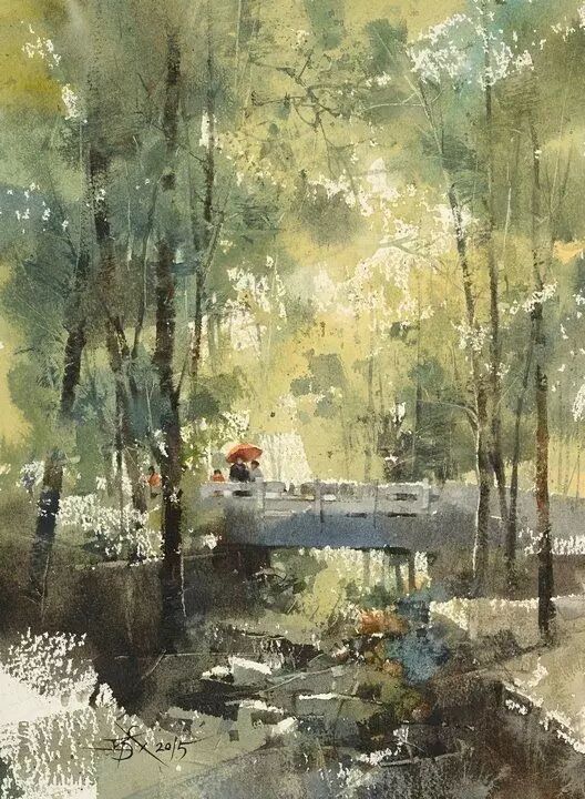 2015画作《八里左岸》入选美国水彩画协会AWS第148届国际年展,并荣获Alan R. Chiara纪念奖。
