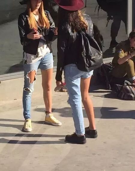 一个人穿牛仔长裤,一个人穿牛仔短裤,是不是会顺眼多了?