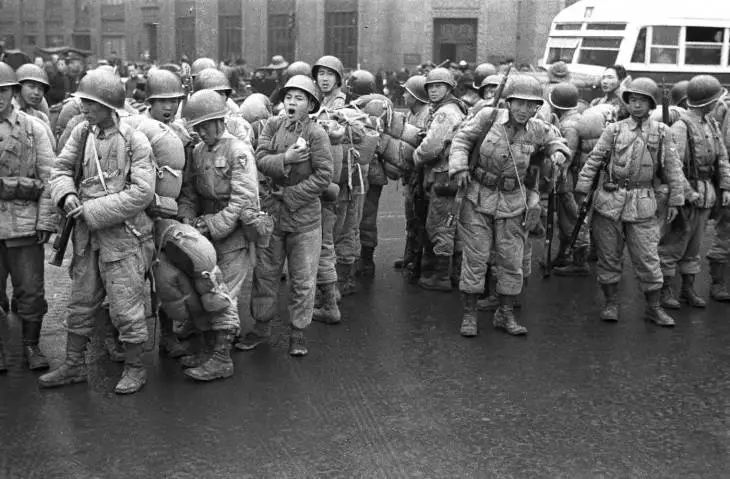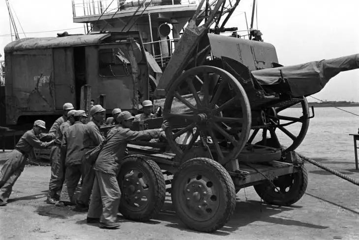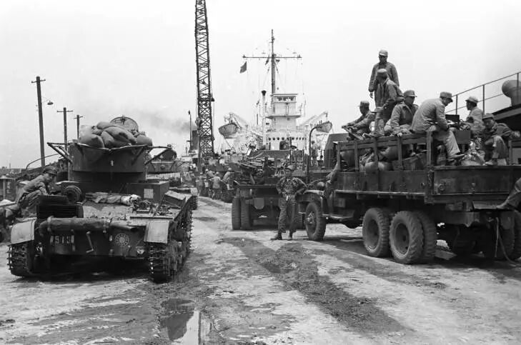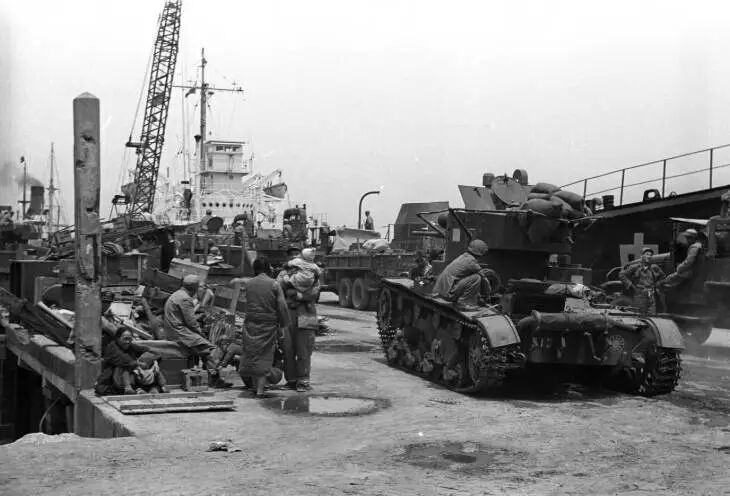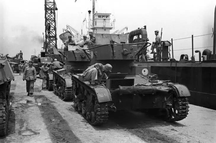 照片中的国军装甲部队正在装船撤台湾,其中居然有不少苏联制造的T26坦克。敢情也有不少苏式装备。