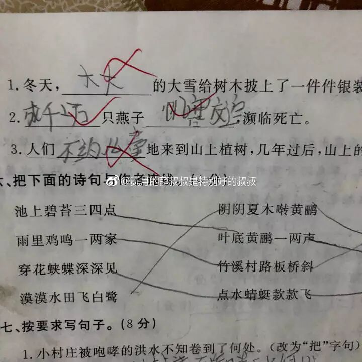 这张卷子千万不要让你亲妈看到!只能帮你到这里了。