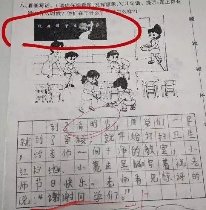 “到了清明节,祝老师节日快乐”