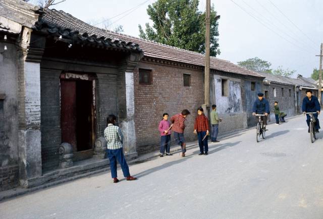 1976年,北京居民房屋的入口处,玩耍的孩子。