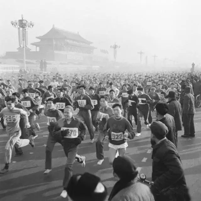 1960年1月30日,一年一度的北京春节环城赛跑从天安门广场开始。