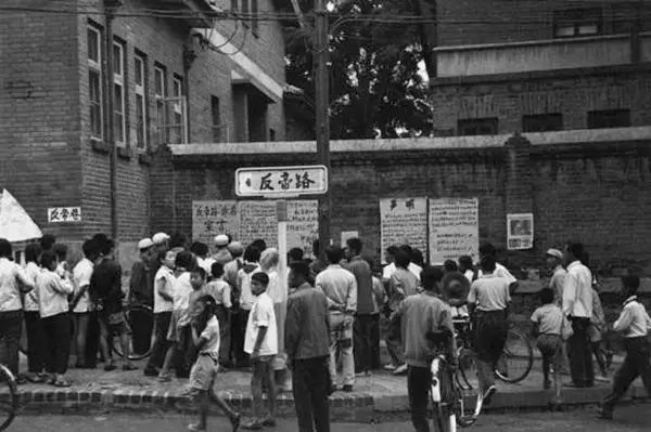 群众在东交民巷观看"中国人民银行革命造反者"张贴的《"反帝路"革命宣言》许林摄。