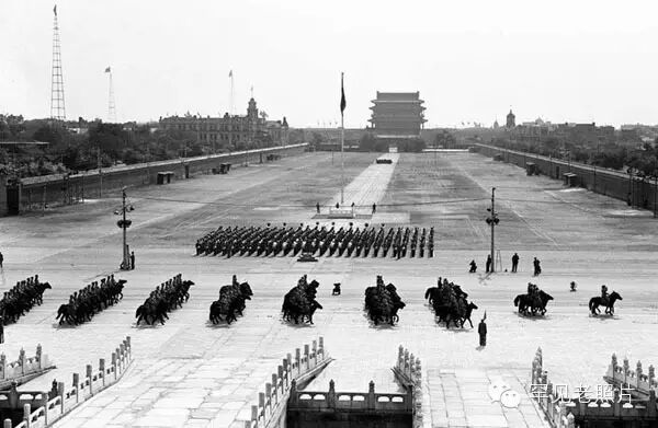 1950年10月1日,中国人民解放军骑兵部队通过天安门广场。