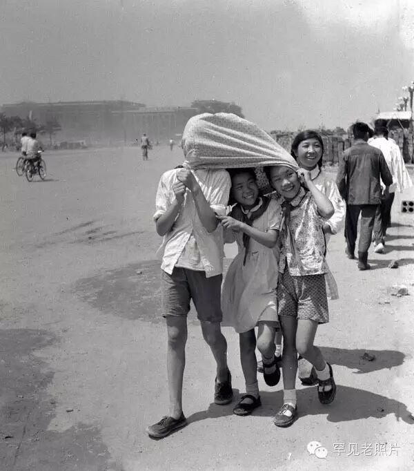 1959年,天安们广场,沙尘暴下的的孩子们。