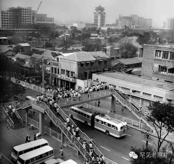 1981年7月1日,北京首座行人过街桥,西单人行过街桥建成开通。刘英毅/摄。