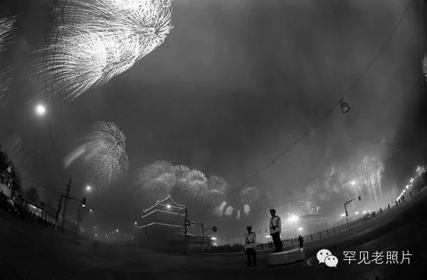 1984年10月1日,北京,前门城楼下国庆35周年焰火。刘英毅/摄。