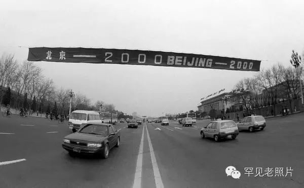 1993年3月,长安街上挂起了申办2000奥运会的横幅,欢迎来京的国际奥委会考察团。刘英毅/摄。