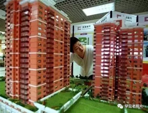 1998年9月13日,北京,购房者在售楼部观看楼房模型。自1998年福利分房制度结束后,中国房地产进入市场化的时代。
