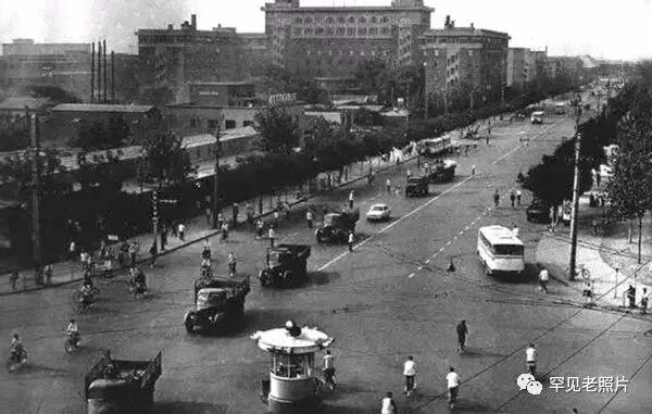 1950年代,北京西单路口,老北京最热闹的地方之一。