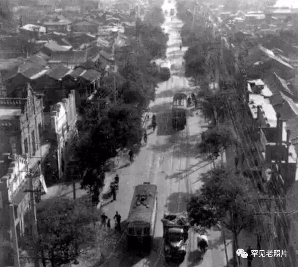 1958年,北京新街口南大街,路上行驶的还是有轨电车。
