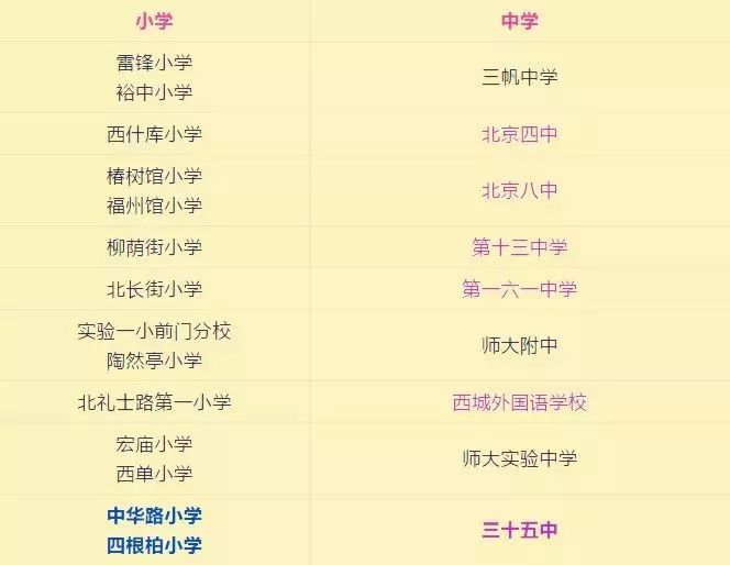 西城区“小升初”对口学校一览