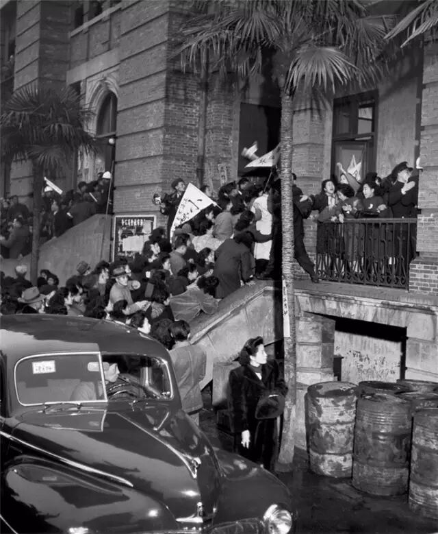 1949年,上海,饥饿的抗议者来到外滩的中央银行试图获得政府许诺的救济资金。