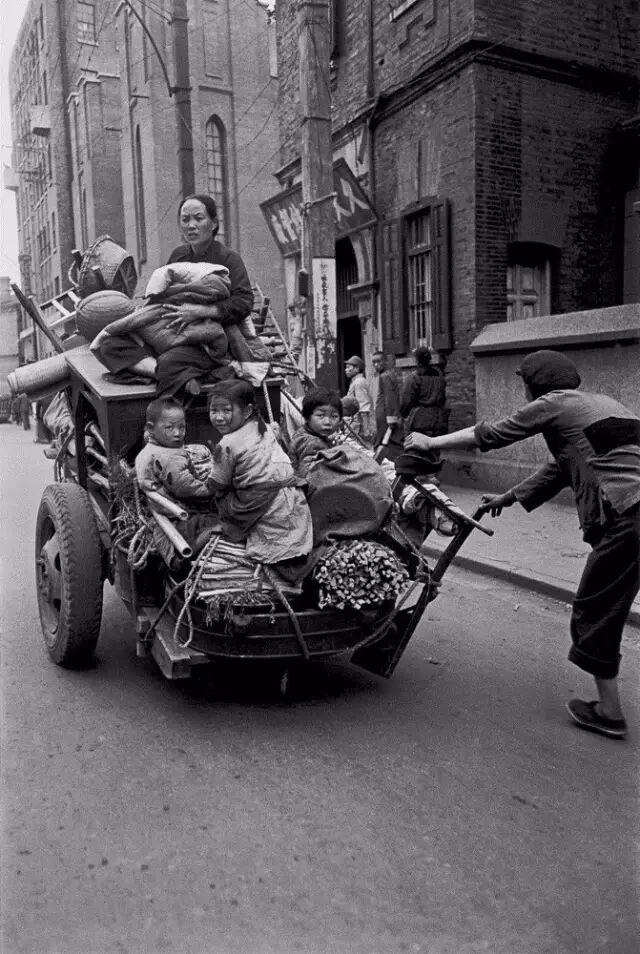 1949年,上海,街上的商贩,车下是已经睡着的孩子。布列松/摄。