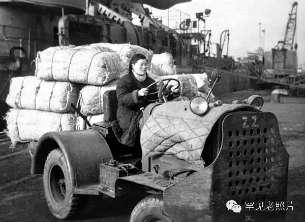 1950年代,全国先进工作者,上海港务局第三装卸区女拖车手张凤芝。