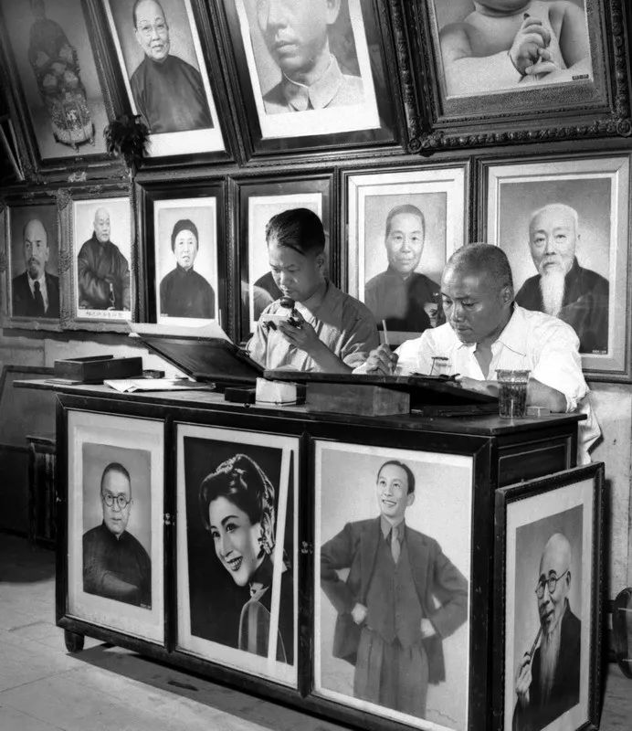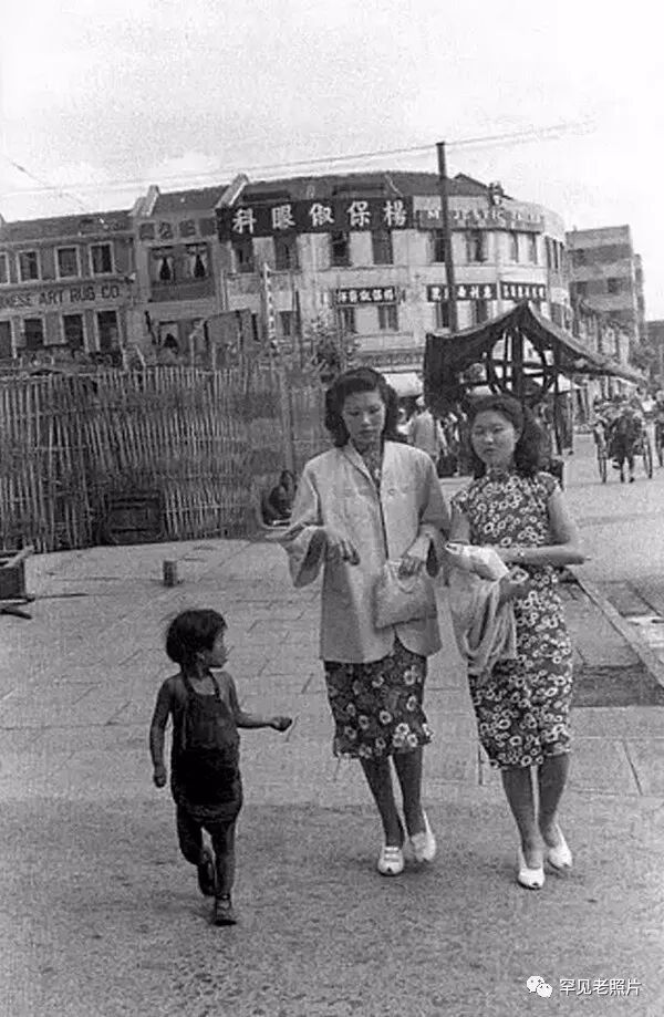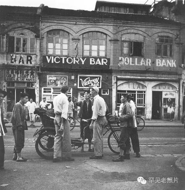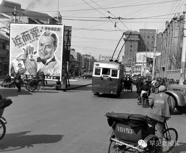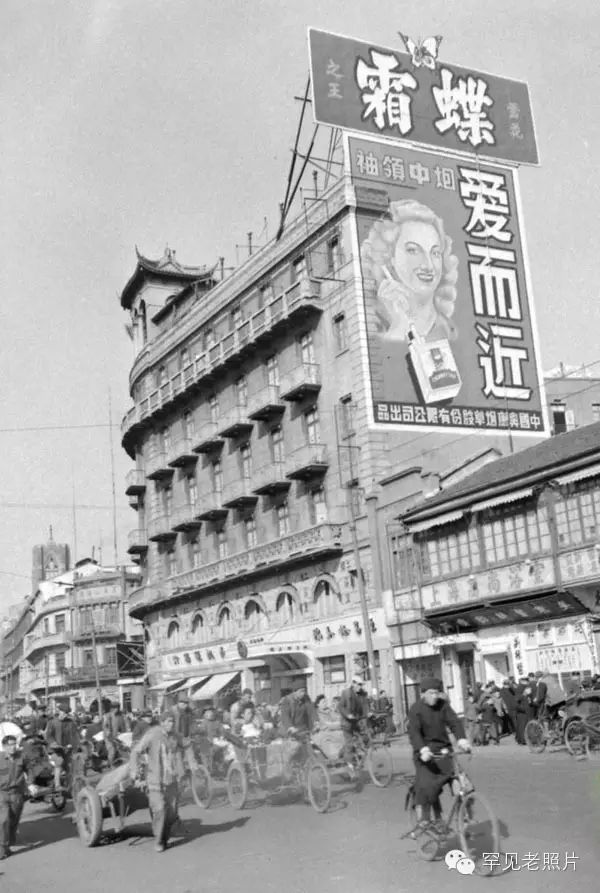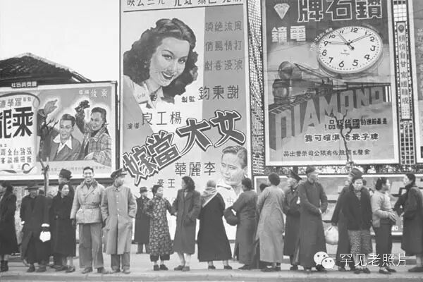 1948年,上海街头的人们,他们身后的广告牌仿佛告诉你这里的生活一切如常。