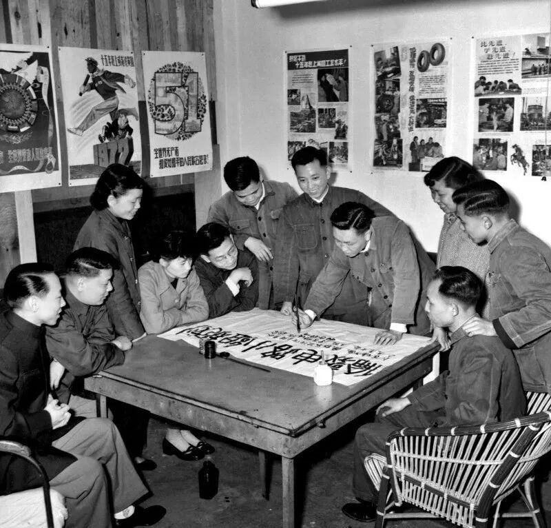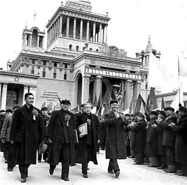 1956年1月20日,上海市在中苏友好大厦举行资本主义工商业申请公私合营大会,左一为荣毅仁。