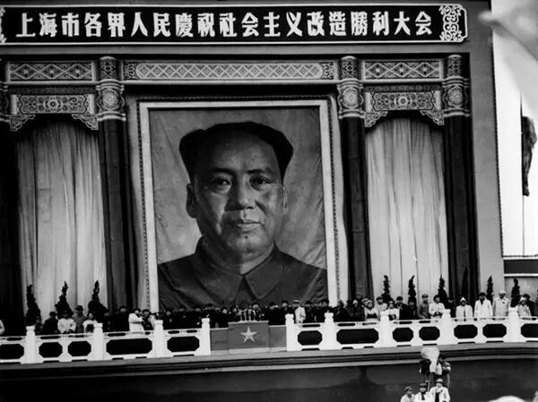 1949年6月,上海,集会上的朱德肖像。布列松/摄。
